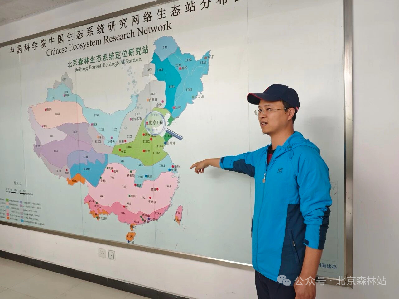 在综合办公区,执行站长王杨博士向同学们解读了中国生态系统研究网络(CERN)野外台站在全国的布局,详细介绍了北京森林站的建站历史、科学定位、研究方向和发展情况。随后,带领大家实地考察了科学实验区,王杨博士向大家介绍了北京森林站的油松林、落叶松林和落叶阔叶混交林观测场及观测场内布设的主要仪器设备,介绍了暖温带森林生态系统“天-空-地”一体化监测的开展情况。